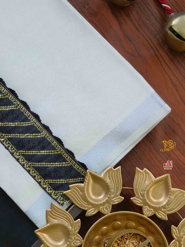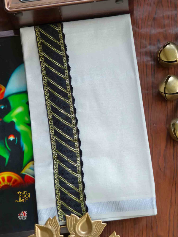 Product Specifications: Multi Colour Embroidery Silver Kasavu Single Dhoti