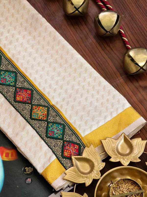 Product Specifications: Multi Colour Embroidery Copper Kasavu Single Dhoti