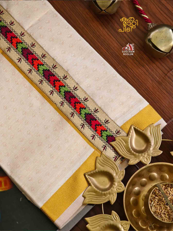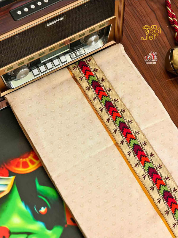 Product Specifications: Multi Colour Embroidery Golden Kasavu Single Dhoti
