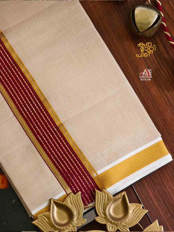 Product Specifications: Multi Colour Embroidery Golden Kasavu Single Dhoti