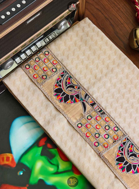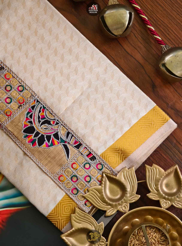 Product Specifications: Multi Colour Embroidery Golden Kasavu Single Dhoti