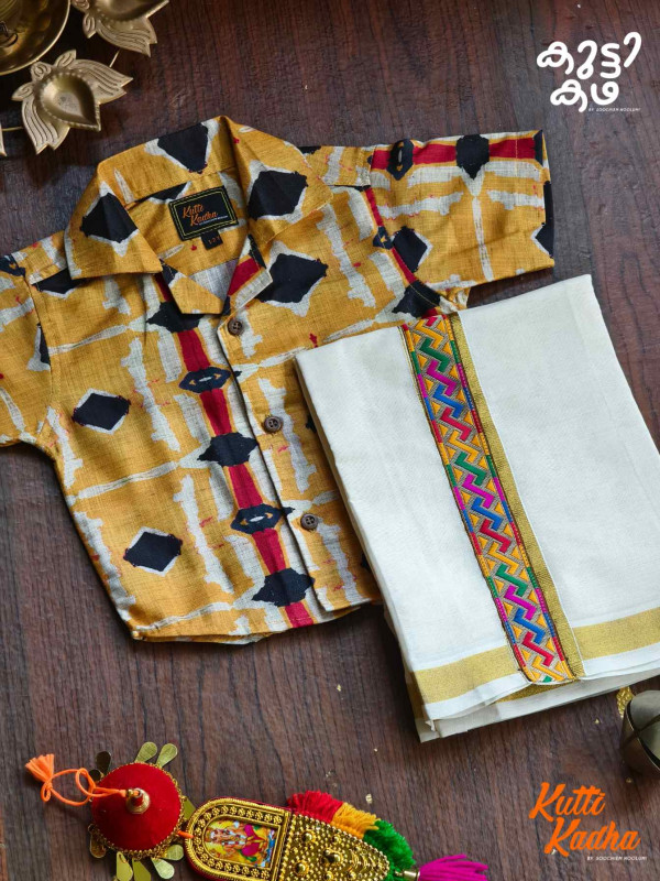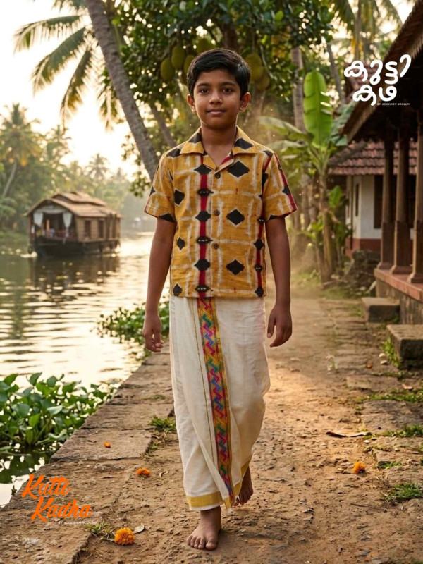 Bring home the charm of tradition with a playful modern twist. This premium set from Kutti Kadha by Soochiem Noolum features a beautifully crafted digital printed shirt paired with a classic dhoti, designed especially for little ones who deserve comfort and style.