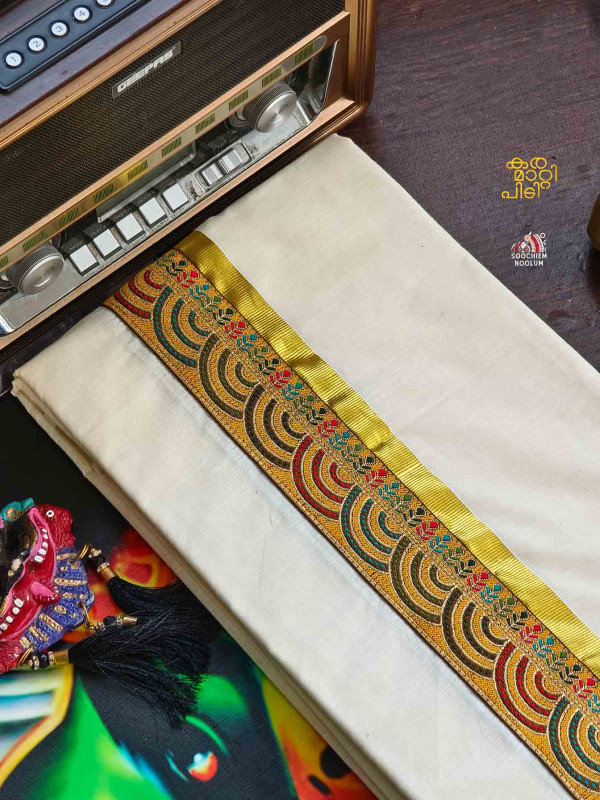 Stiched Border: Both end of the double kasavu dhotie is elegantly finished with a stitched border , adding a touch of sophistication and durability.