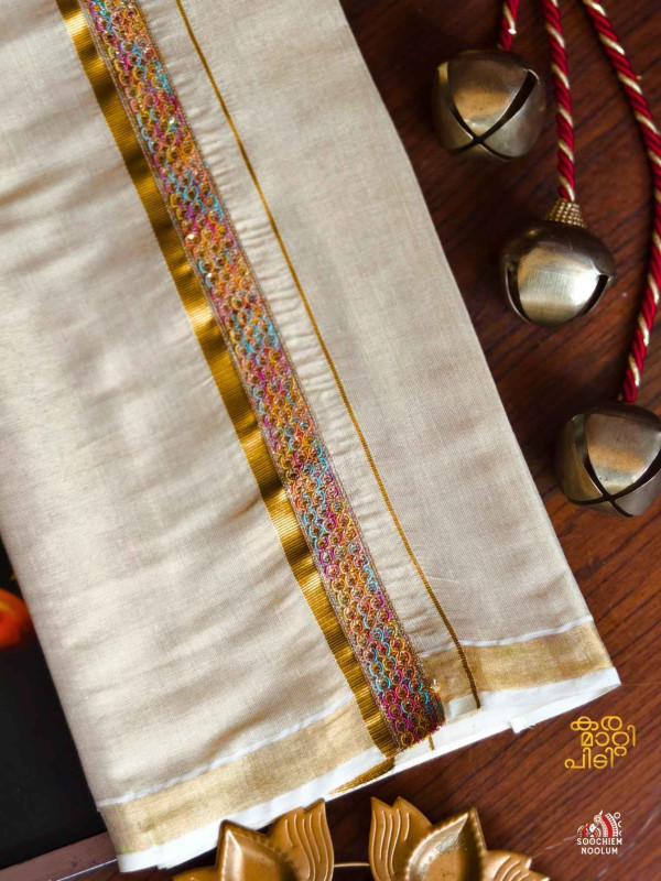 Stiched Border: Both end of the double kasavu dhotie is elegantly finished with a stitched border , adding a touch of sophistication and durability.