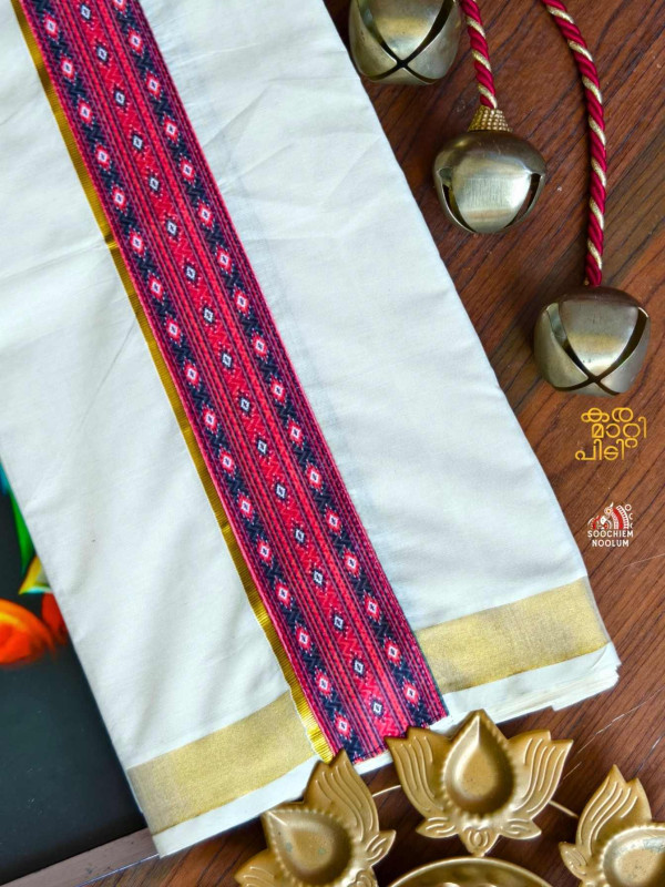 Stiched Border: Both end of the double kasavu dhotie is elegantly finished with a stitched border , adding a touch of sophistication and durability.
