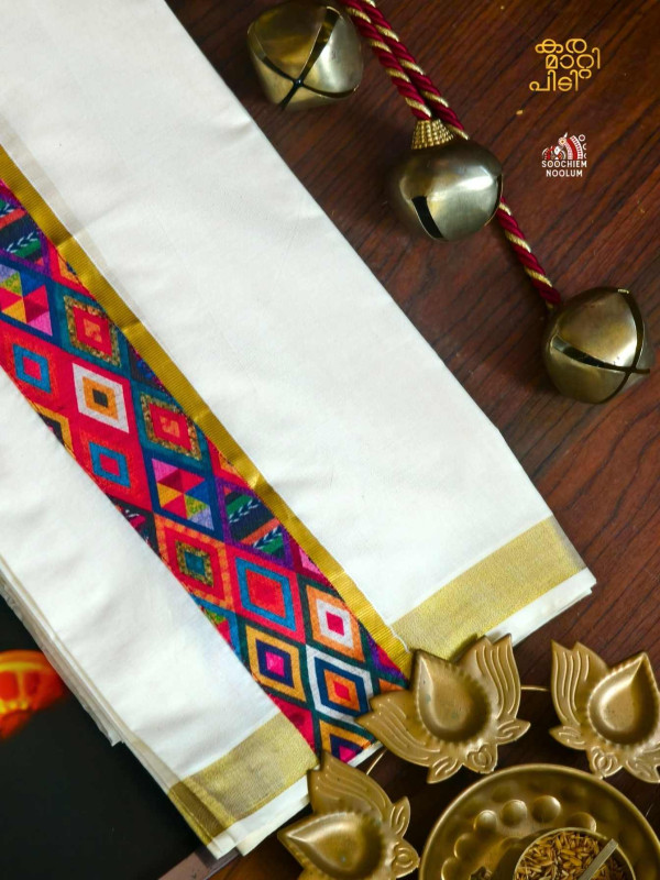 Stiched Border: Both end of the double kasavu dhotie is elegantly finished with a stitched border , adding a touch of sophistication and durability.