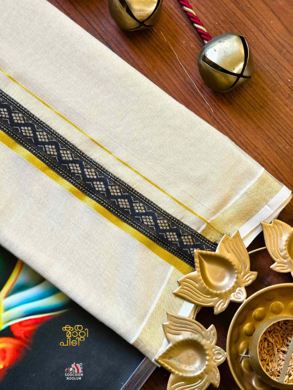 Stiched Border: Both end of the double kasavu dhotie is elegantly finished with a stitched border , adding a touch of sophistication and durability.