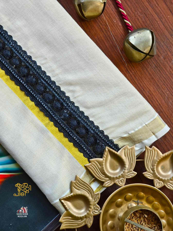 Stiched Border: Both end of the double kasavu dhotie is elegantly finished with a stitched border , adding a touch of sophistication and durability.
