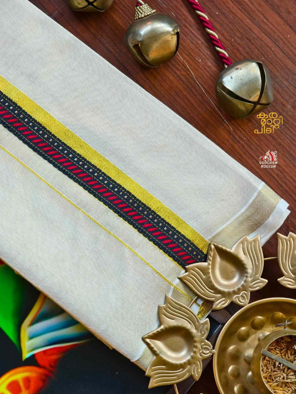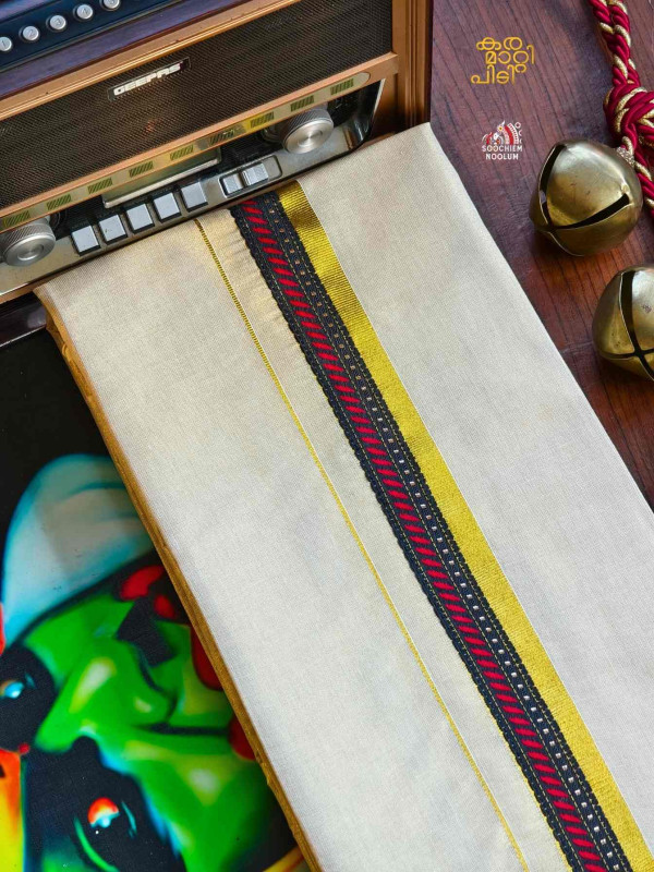 Stiched Border: Both end of the double kasavu dhotie is elegantly finished with a stitched border , adding a touch of sophistication and durability.