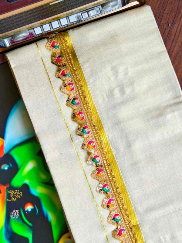 Stiched Border: Both end of the double kasavu dhotie is elegantly finished with a stitched border , adding a touch of sophistication and durability.