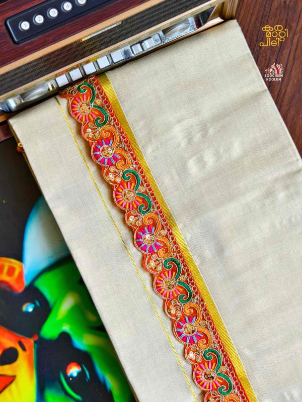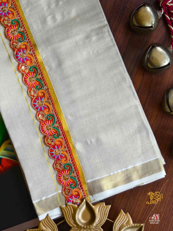 Stiched Border: Both end of the double kasavu dhotie is elegantly finished with a stitched border , adding a touch of sophistication and durability.