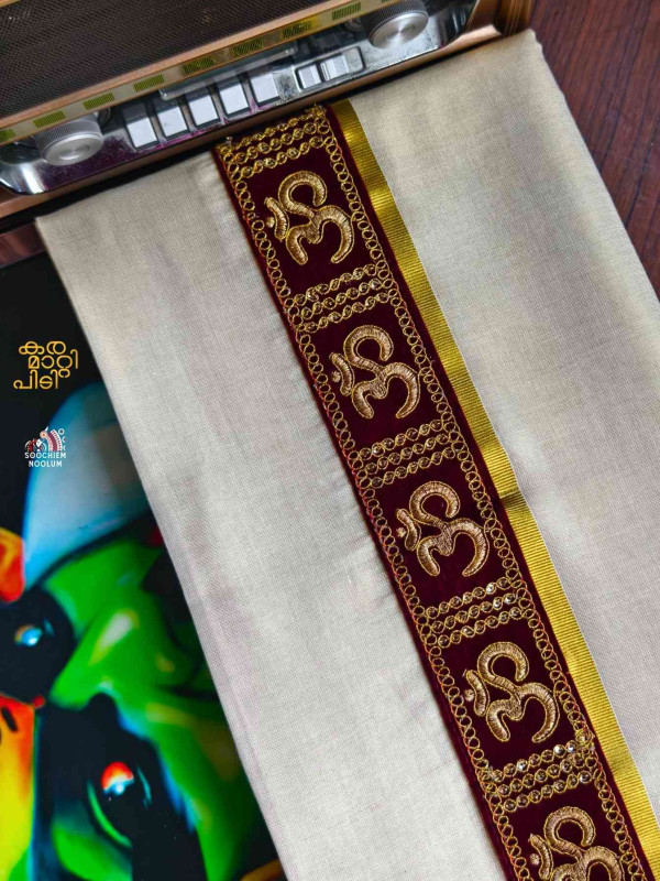 Stiched Border: Both end of the double kasavu dhotie is elegantly finished with a stitched border , adding a touch of sophistication and durability.