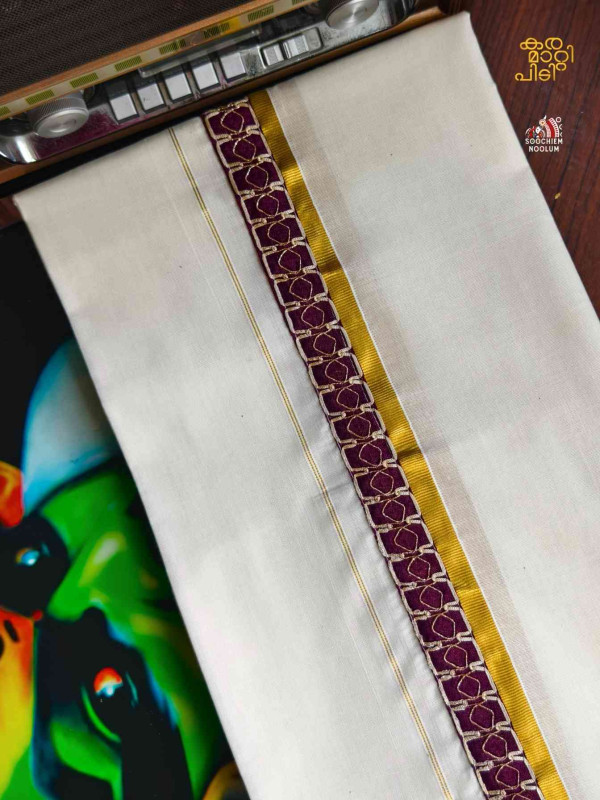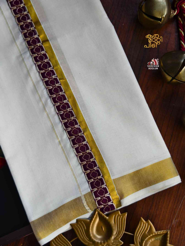 Stiched Border: Both end of the double kasavu dhotie is elegantly finished with a stitched border , adding a touch of sophistication and durability.