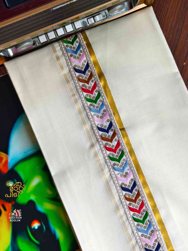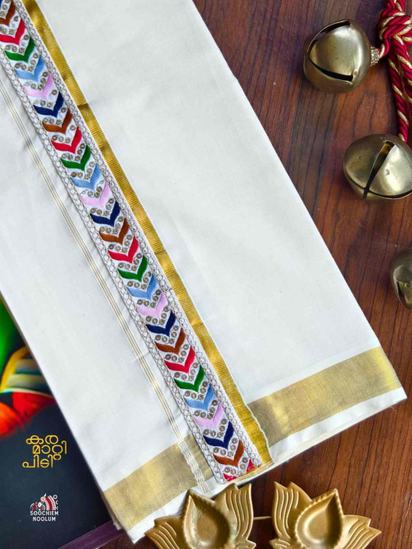 Stiched Border: Both end of the double kasavu dhotie is elegantly finished with a stitched border , adding a touch of sophistication and durability.
