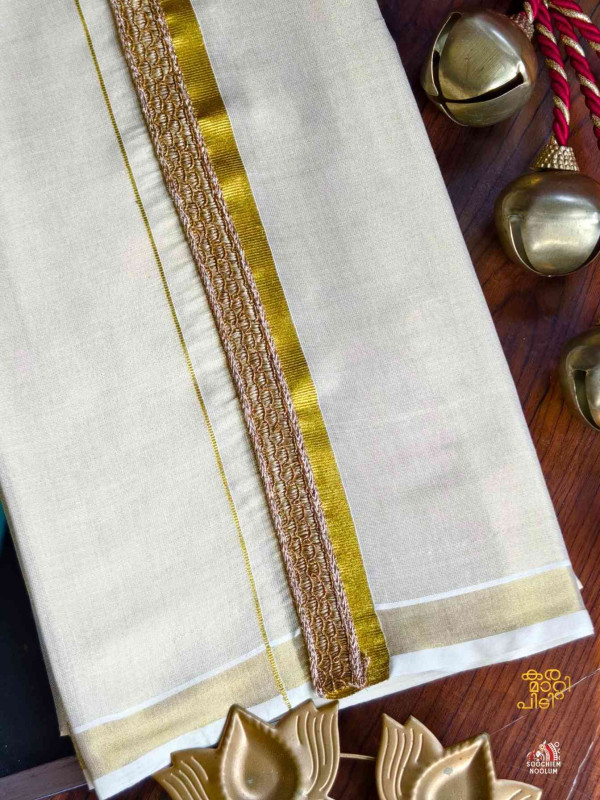 Stiched Border: Both end of the double kasavu dhotie is elegantly finished with a stitched border , adding a touch of sophistication and durability.