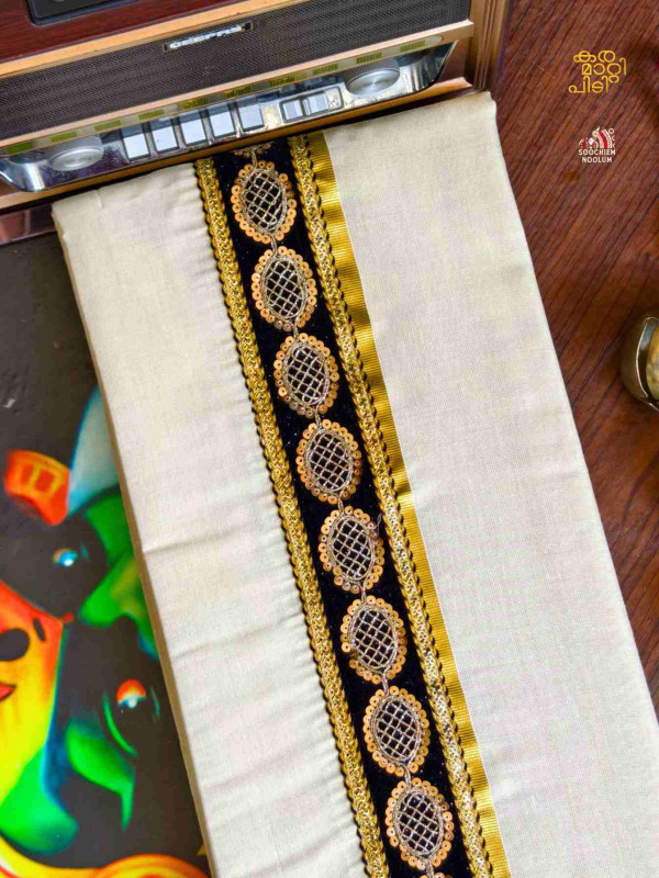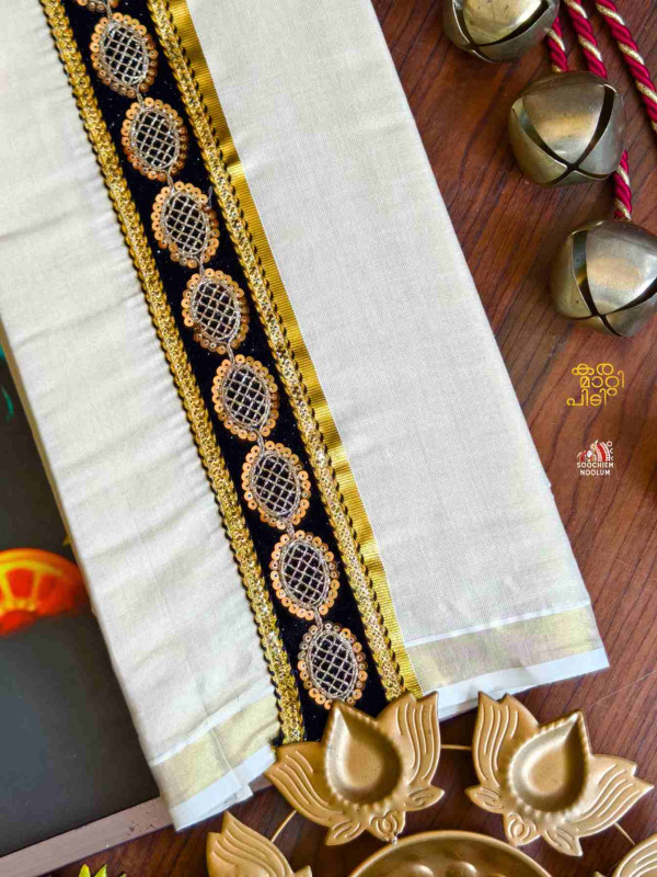 Stiched Border: Both end of the double kasavu dhotie is elegantly finished with a stitched border , adding a touch of sophistication and durability.