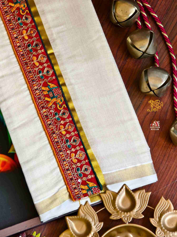 Stiched Border: Both end of the double kasavu dhotie is elegantly finished with a stitched border , adding a touch of sophistication and durability.