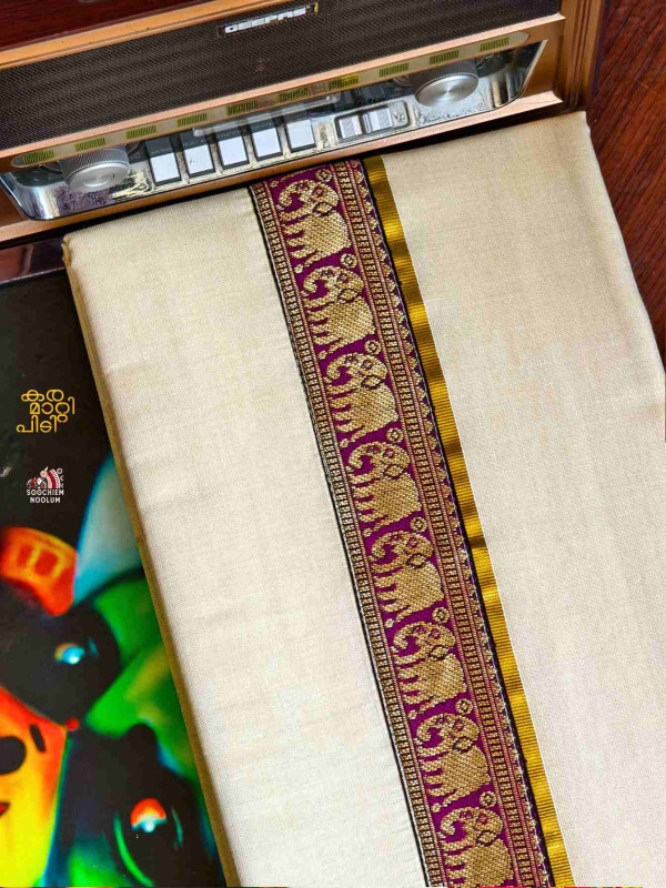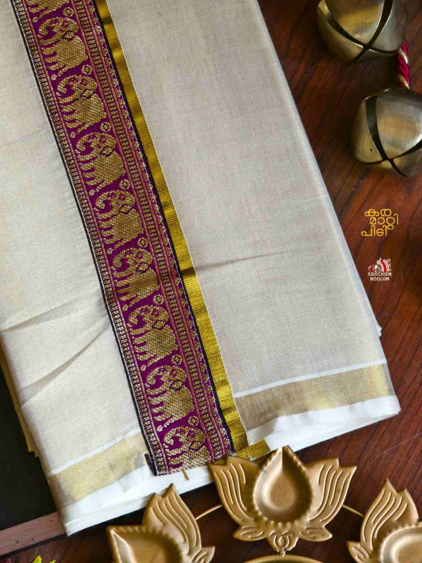 Stiched Border: Both end of the double kasavu dhotie is elegantly finished with a stitched border , adding a touch of sophistication and durability.