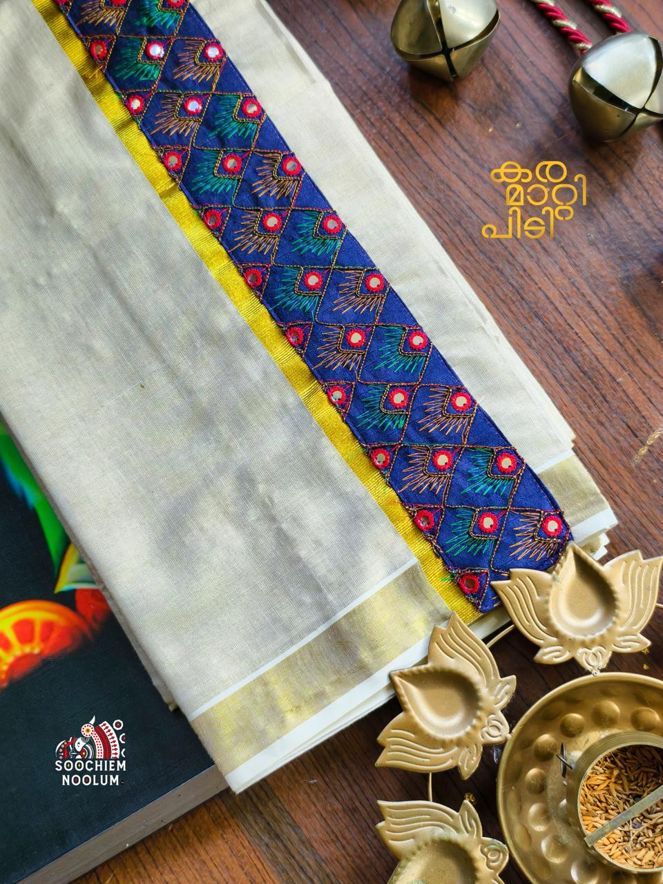 Stiched Border: Both end of the double kasavu dhoti is elegantly finished with a stitched border , adding a touch of sophistication and durability.