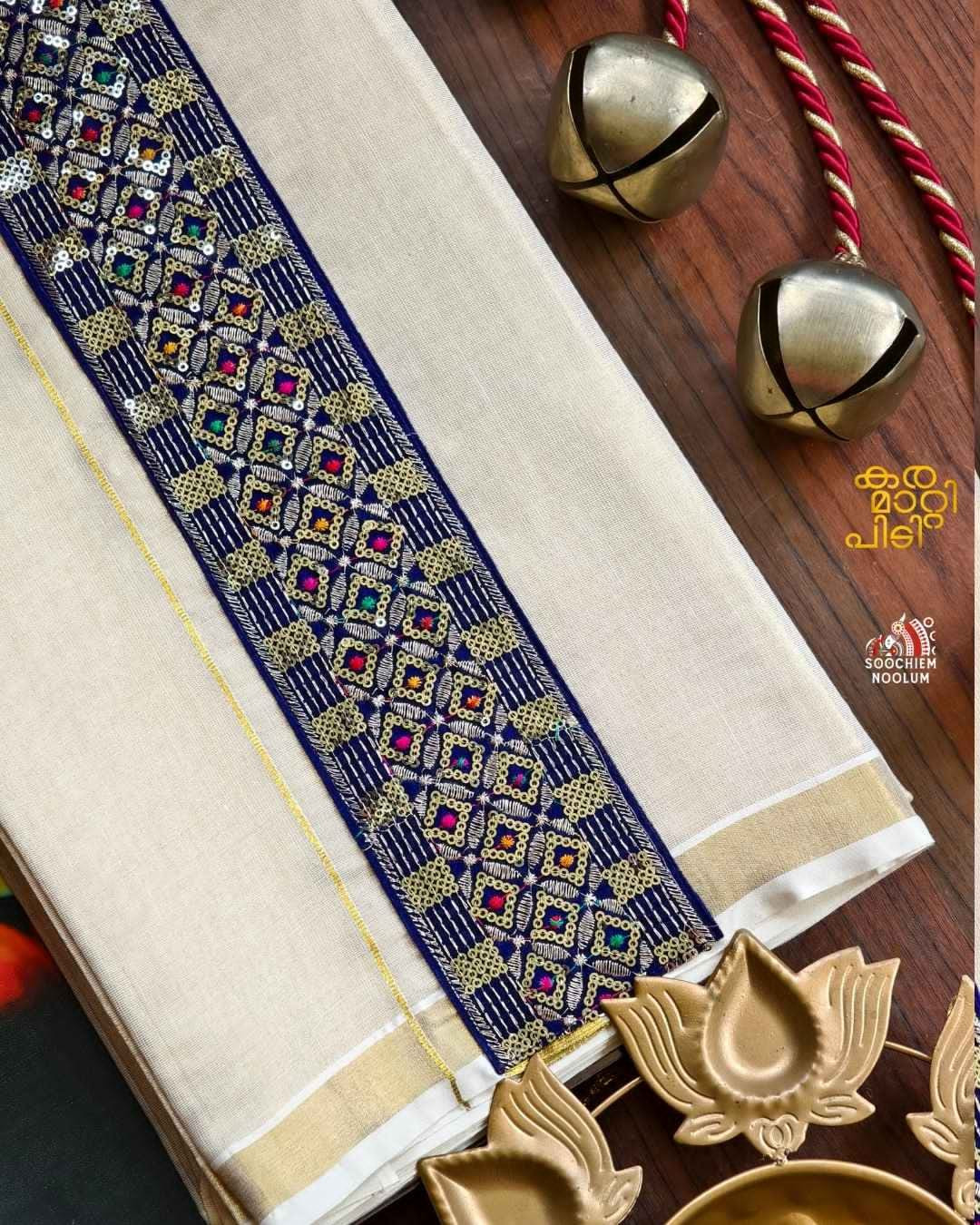 Stiched Border: Both end of the double kasavu dhoti is elegantly finished with a stitched border , adding a touch of sophistication and durability.