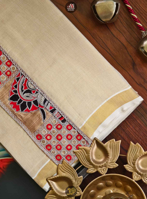 Stiched Border: Both end of the double kasavu dhotie is elegantly finished with a stitched border , adding a touch of sophistication and durability.