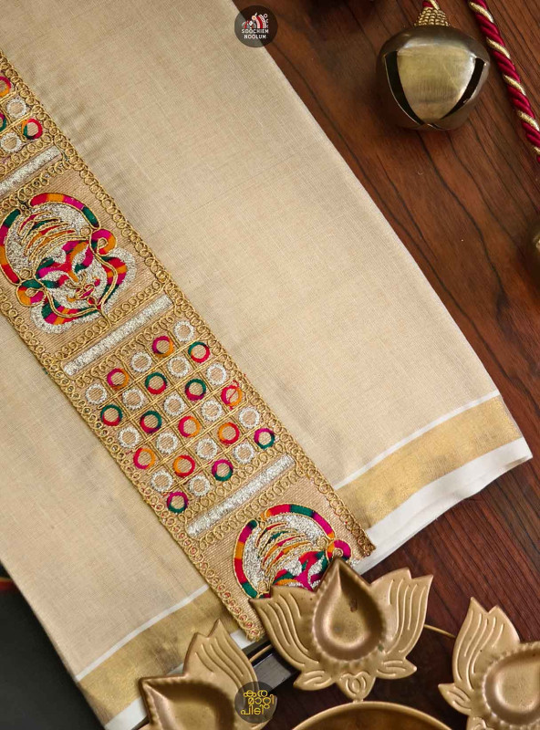 Stiched Border: Both end of the double kasavu dhotie is elegantly finished with a stitched border , adding a touch of sophistication and durability.