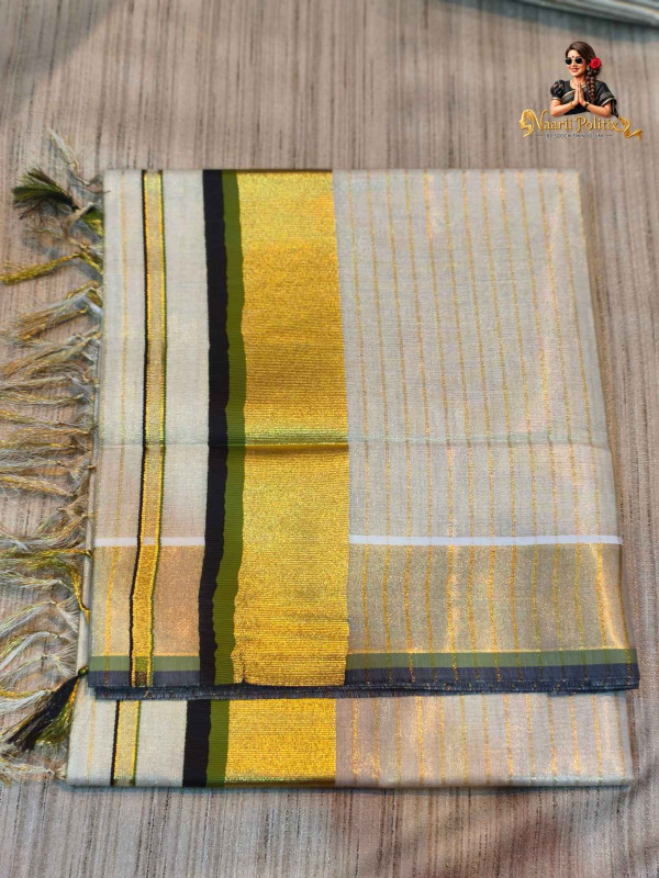 Striped Tissue Kasavu Saree 2 color Kara