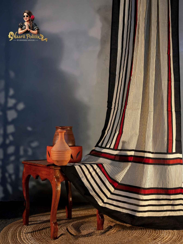 The soft crepe silk weave offers a fluid drape with a gentle sheen, enhancing the saree’s luxurious appeal. Adorned with subtle gold zari striped patterns across the pallu and a traditional intricate zari border, this piece effortlessly blends minimalism with classic artistry. The lightweight texture ensures comfort, making it ideal for festive occasions, celebrations, and elegant gatherings.