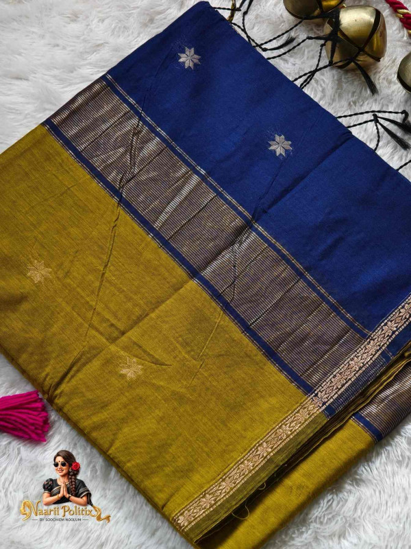Body Color : Olive Green Pallu : Navy Blue