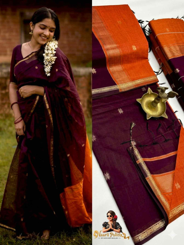 Designed with a striking contrast colour pallu, cute little temple borders, and delicate flower motifs scattered across the body, each saree reflects a charming blend of heritage and understated sophistication. The result is a saree that feels graceful, regal, and effortlessly wearable for festive days, gatherings, and elegant everyday dressing.