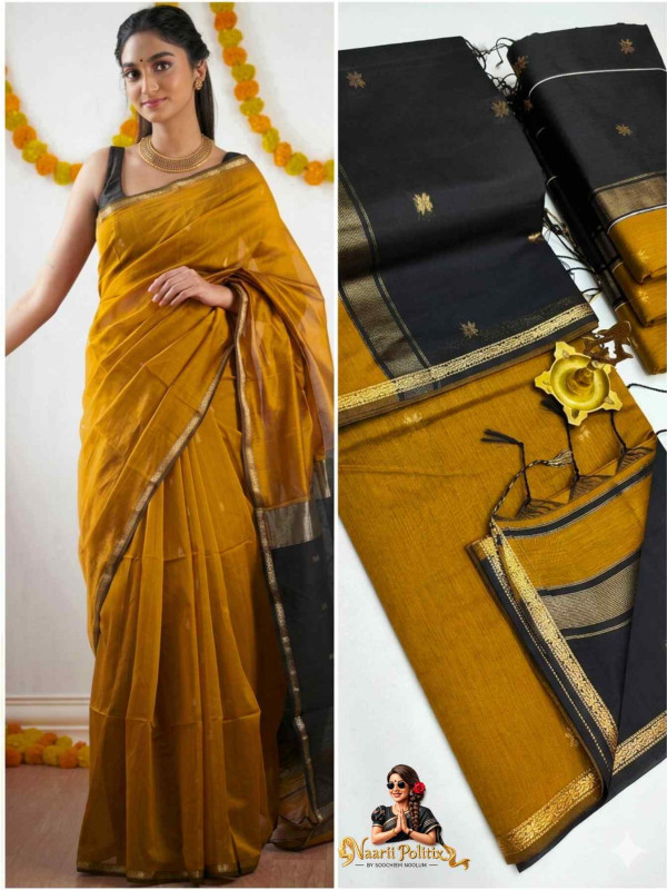 Designed with a striking contrast colour pallu, cute little temple borders, and delicate flower motifs scattered across the body, each saree reflects a charming blend of heritage and understated sophistication. The result is a saree that feels graceful, regal, and effortlessly wearable for festive days, gatherings, and elegant everyday dressing.