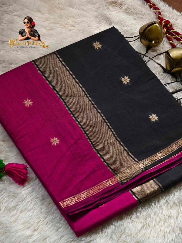 Designed with a striking contrast colour pallu, cute little temple borders, and delicate flower motifs scattered across the body, each saree reflects a charming blend of heritage and understated sophistication. The result is a saree that feels graceful, regal, and effortlessly wearable for festive days, gatherings, and elegant everyday dressing.