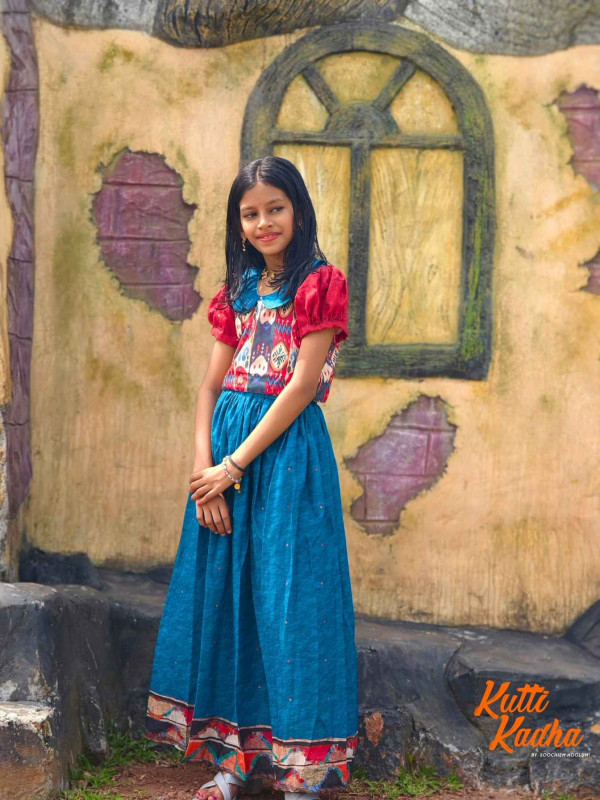 Introducing Nirakkoott, a delightful Gathered Skirt and Top collection from Kutti Kadha by Soochiem Noolum. Crafted from soft cotton fabric, this charming ensemble features intricate contemporary ikat patterns, enhancing its elegance and texture.