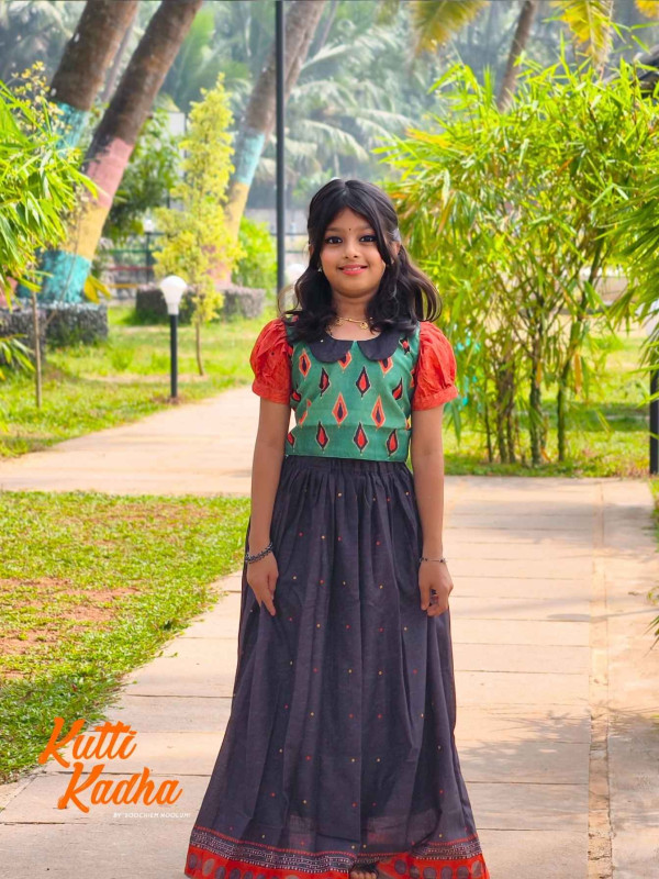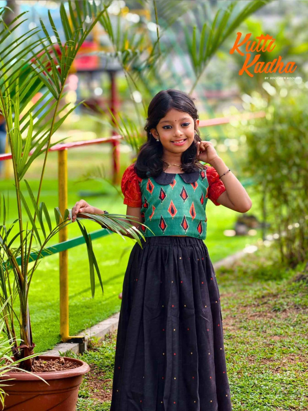 Introducing Nirakkoott, a delightful Gathered Skirt and Top collection from Kutti Kadha by Soochiem Noolum. Crafted from soft cotton fabric, this charming ensemble features intricate contemporary ikat patterns, enhancing its elegance and texture.