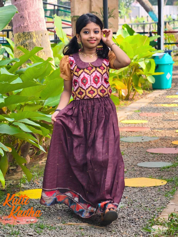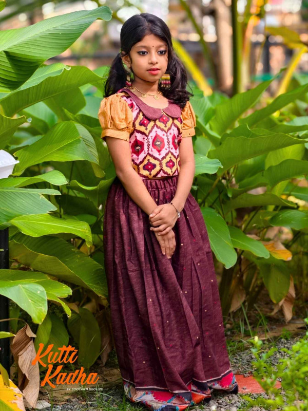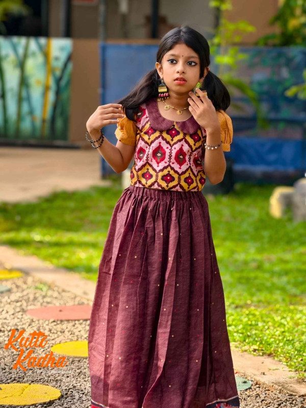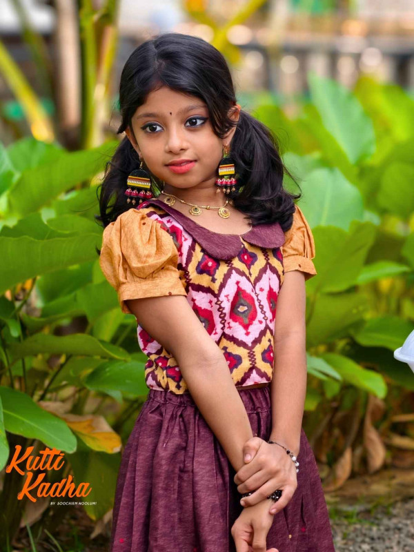 Introducing Nirakkoott, a delightful Gathered Skirt and Top collection from Kutti Kadha by Soochiem Noolum. Crafted from soft cotton fabric, this charming ensemble features intricate contemporary ikat patterns, enhancing its elegance and texture.
