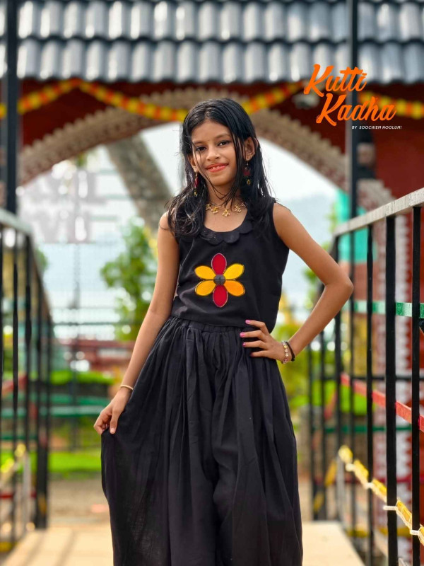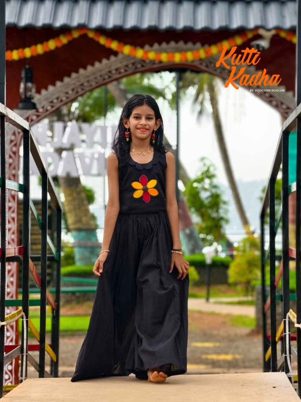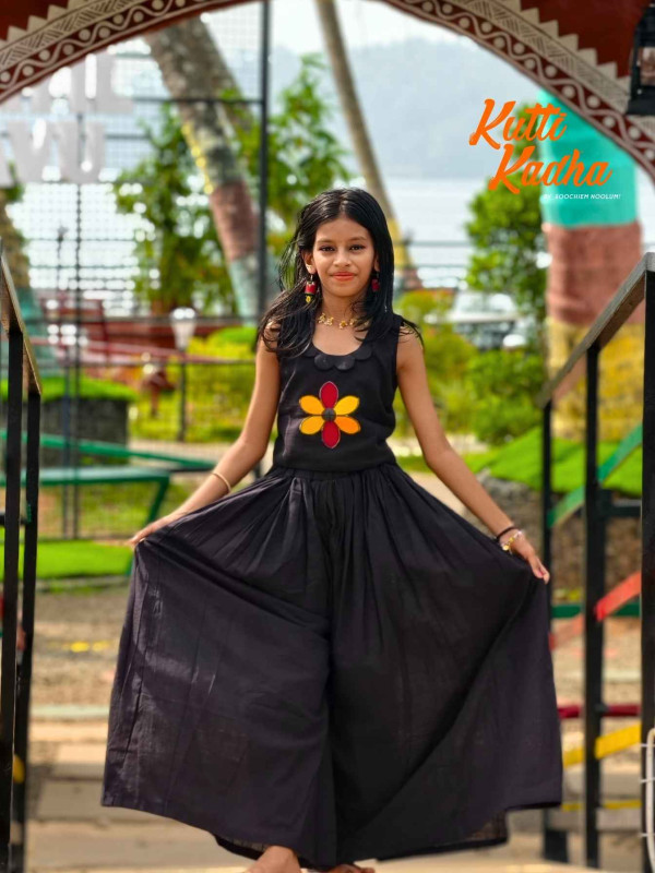 Introducing POOKKALAM, a delightful pleated Palazzo and Crop Top collection from Kutti Kadha by Soochiem Noolum. Crafted from soft cotton fabric , this charming ensemble features a center floral embroidery patch on top , enhancing its elegance and texture.