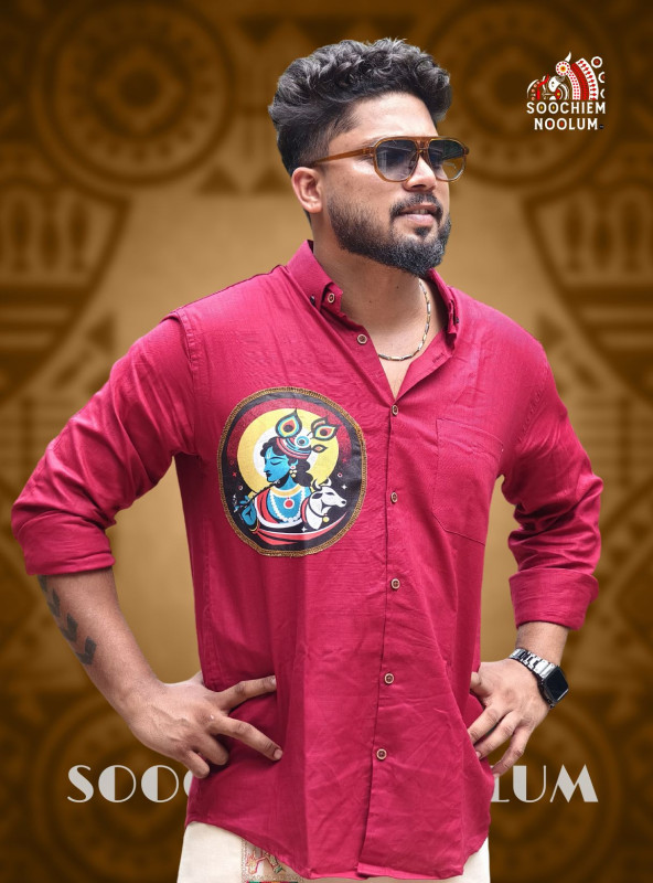 Rectangular patchIntroducing our exclusive collection of patchwork cotton linen shirts, a perfect blend of comfort and artistry. Each patch features intricate, hand-drawn illustrations of deities, festivals, and traditional figures, celebrating the beauty of contemporary and cultural art forms. These shirts are not just attire but a canvas that tells stories of tradition and heritage, offering a unique statement piece for every occasion. Embrace the richness of artistic expressions while enjoying the breathable luxury of cotton linen, designed to keep you stylish and comfortable all day long.